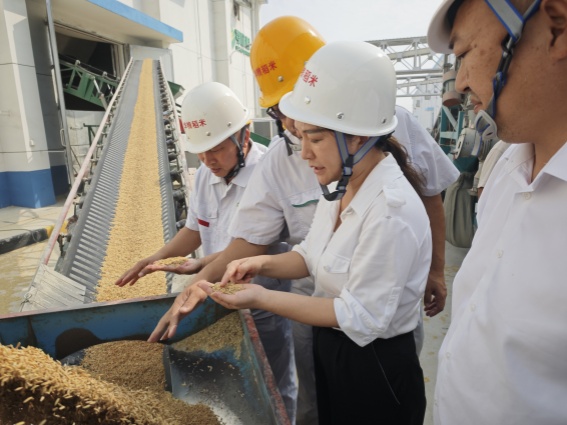 在秋粮收购现场,她实地查看项目建设情况,听取相关人员工作汇报,并与库点人员亲切交谈,详细了解粮食收购、质量检测、储粮安全、集中整治工作等方面的情况。
